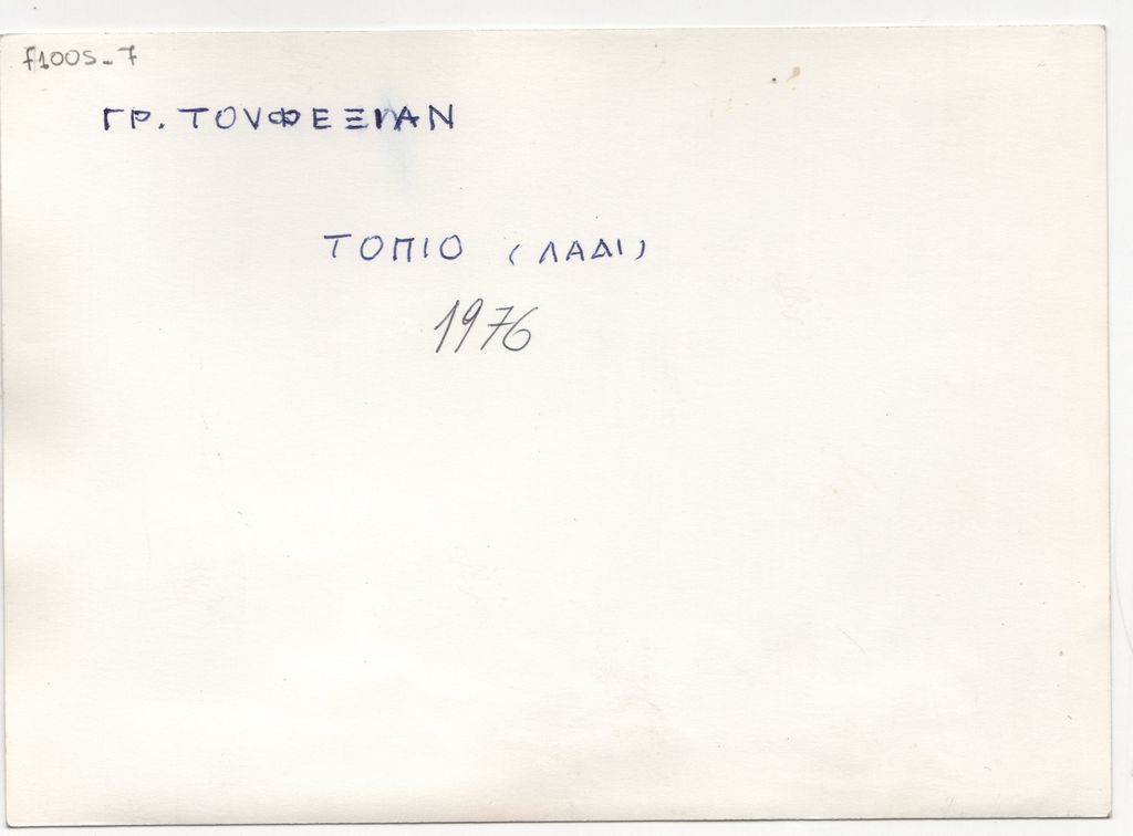 Φωτογραφία, α/μ, φωτογραφικό χαρτί, 12,7×17,7 εκ. Αναπαραγωγή του έργου του Γρηγόρη Τουφεξιάν «Τοπίο», 1976. Στην πίσω όψη, επιγραφή με τα στοιχεία του έργου.