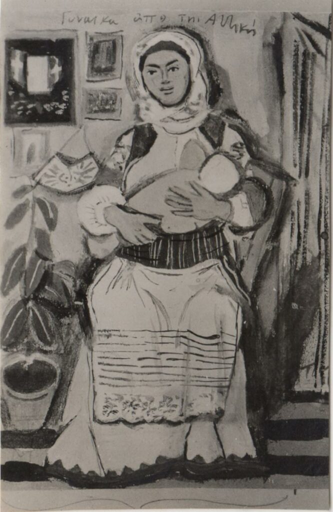 Ασπρόμαυρη εκτυπωμένη φωτογραφία του Γιάννη Τσαρούχη. Στην πίσω όψη, επιγραφή.