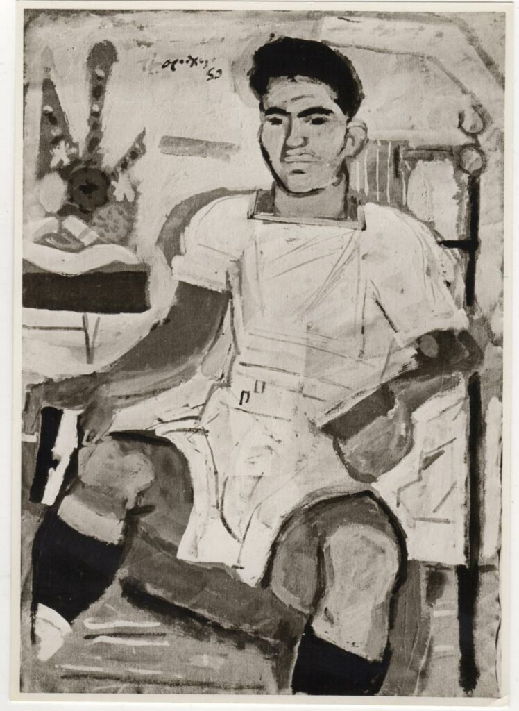 Ασπρόμαυρη εκτυπωμένη φωτογραφία του Γιάννη Τσαρούχη. Στην πίσω όψη, επιγραφή.