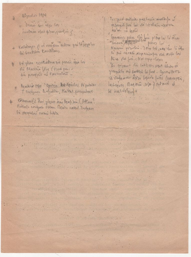 Κείμενο, δακτυλόγραφο, στα ελληνικά, χαρτί, 28,0×21,0 εκ. Δελτίο τύπου της αναδρομικής έκθεσης του Θάνου Τσίγκου που διοργάνωσε η “Επιτροπή Έκθεσης Θ. Τσίγκου” το 1965 ως καλλιτεχνικό μνημόσυνο για τον πρόωρο θάνατό του. Στην πίσω όψη, χειρόγραφες σημειώσεις του Τώνη Σπητέρη.