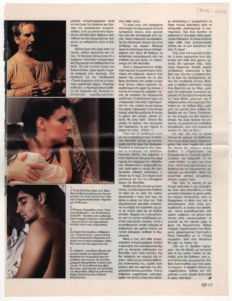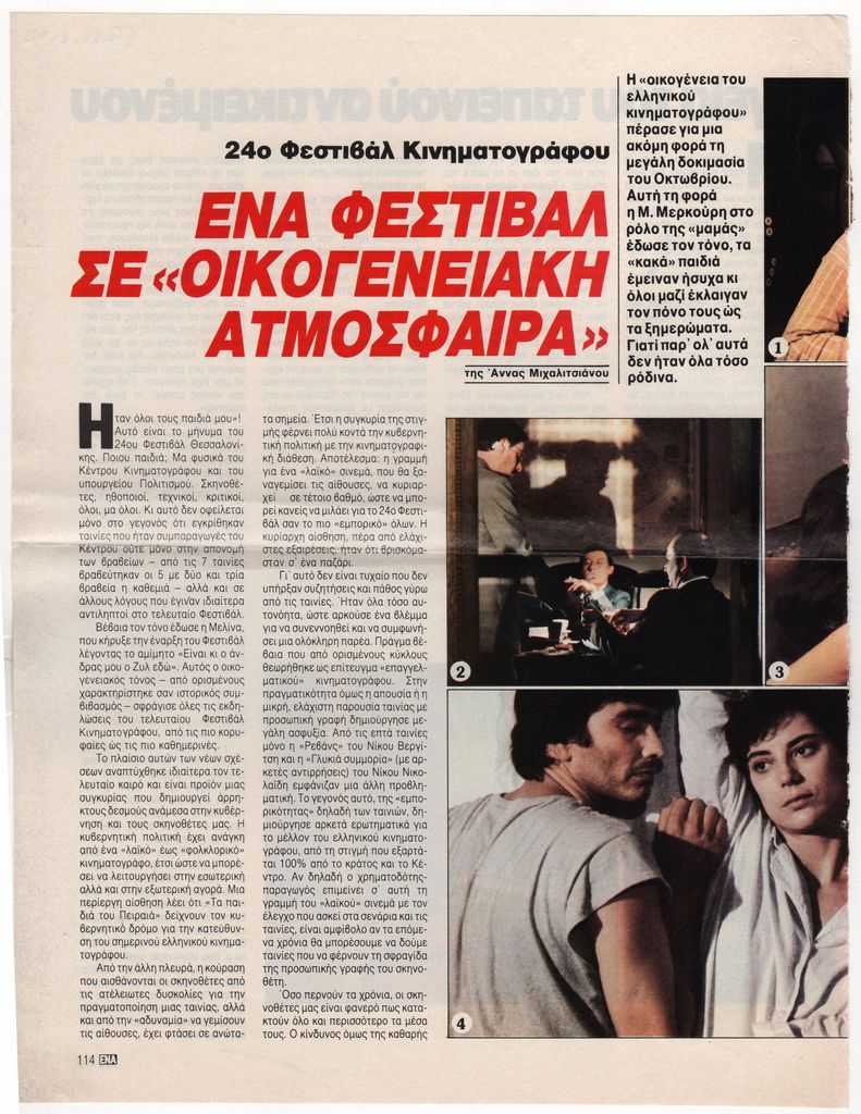 Στο ίδιο απόκομμα, άρθρο της Άννας Μιχαλιτσιάνου για το 24ο Φεστιβάλ Κινηματογράφου Θεσσαλονίκης.