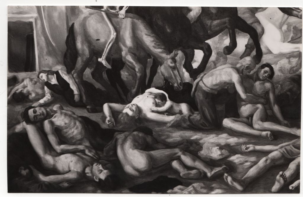 Φωτογραφία, α/μ, φωτογραφικό χαρτί, 11,5×18,0 εκ. Αναπαραγωγή του έργου του Βρασίδα Τσούχλου με τίτλο «Σκηνή της Αποκαλύψεως» (τμήμα). Στην πίσω όψη, επιγραφή.