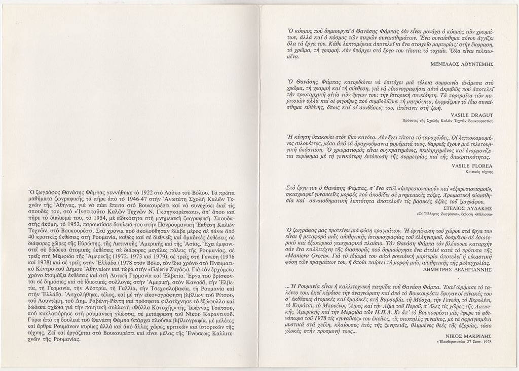 Περιέχει βιογραφικό σημείωμα του καλλιτέχνη και κριτικές για το έργο του.