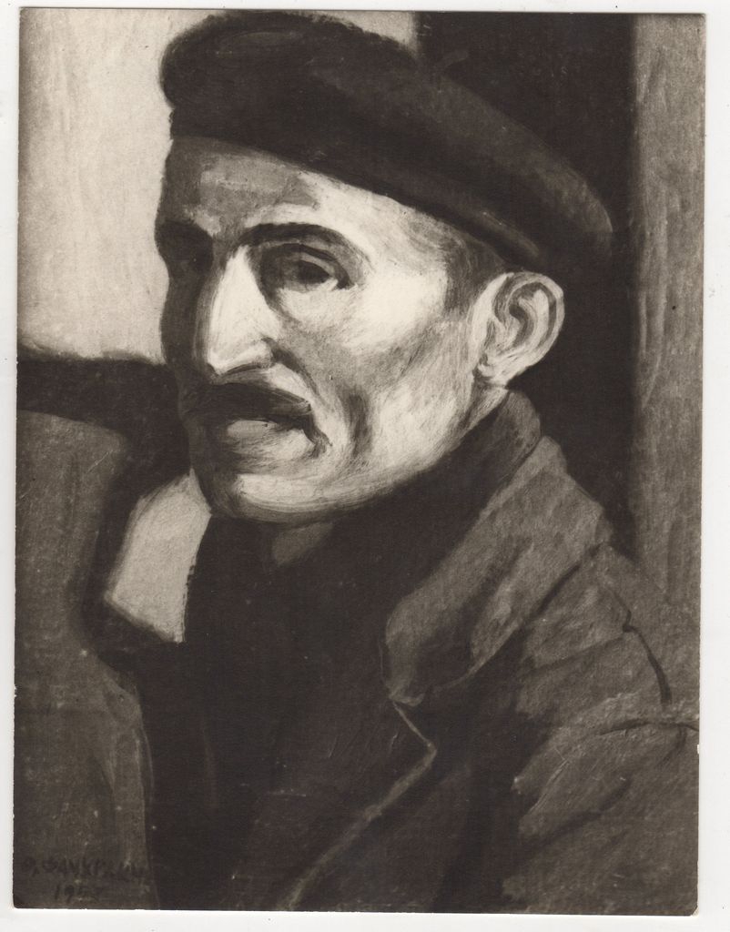 Φωτογραφία, α/μ, φωτογραφικό χαρτί, 14.5×11 εκ., έργου του Θωμά Φανουράκη. Πρόκειται για αυτοπροσωπογραφία του καλλιτέχνη.