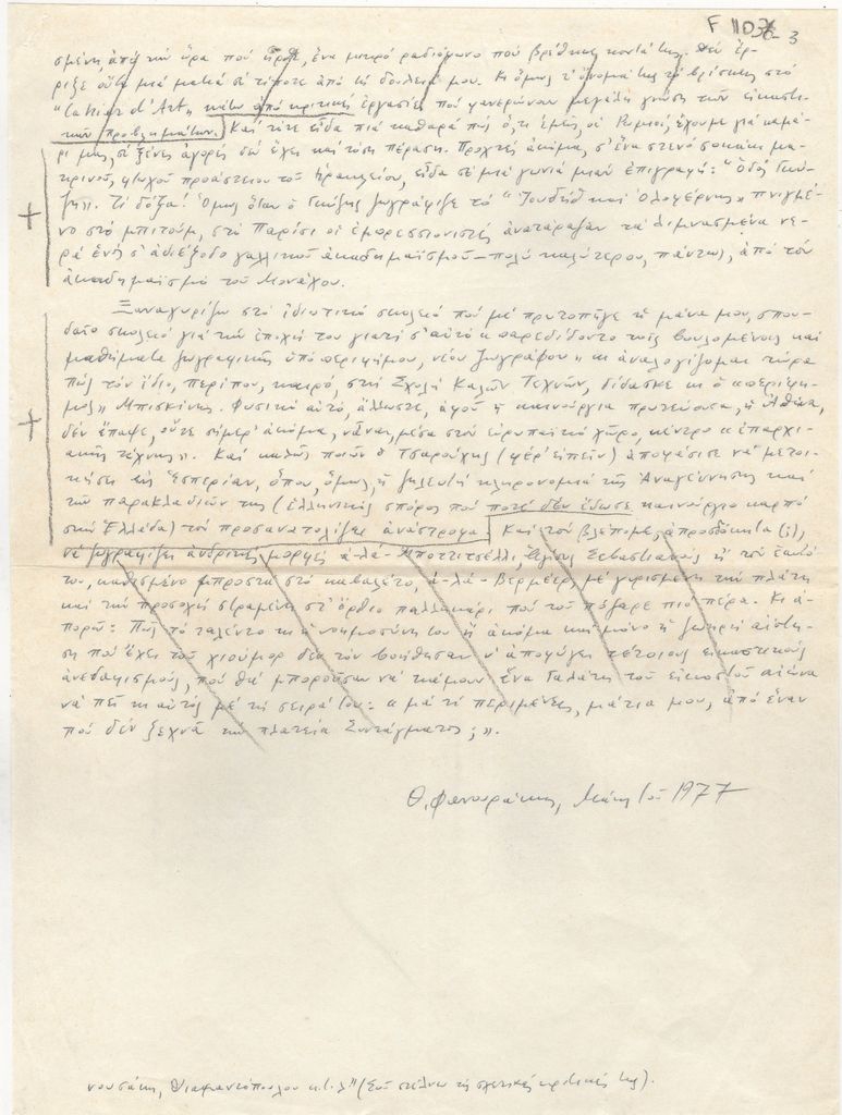 Ιδιόγραφο κείμενο, χαρτί, 3 φφ, 29×21 εκ., στα ελληνικά, του Θωμά Φανουράκη.