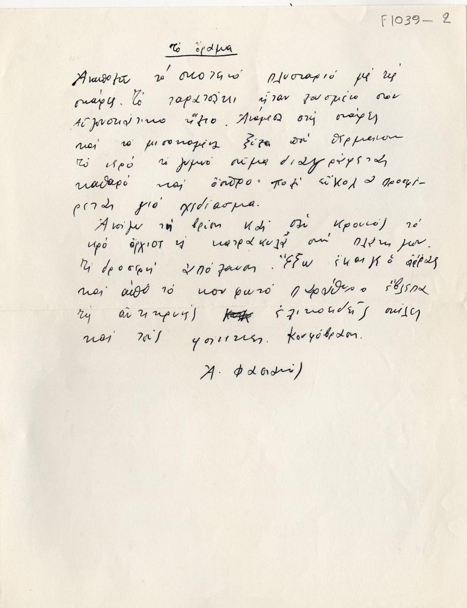Ιδιόγραφο ποίημα του Αλέκου Φασιανού.