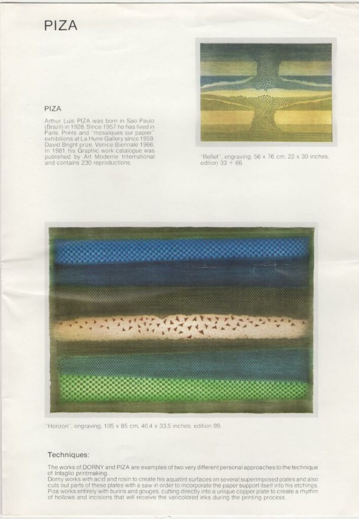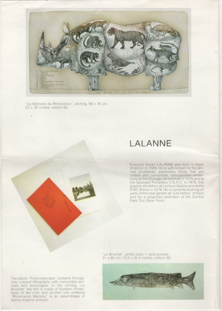 Έντυπο της Galerie La Hune, όπου δίνονται βιογραφικά σημειώματα των Folon, Piza, Dorny, Φασιανού και Lalanne.