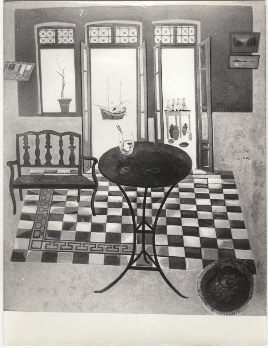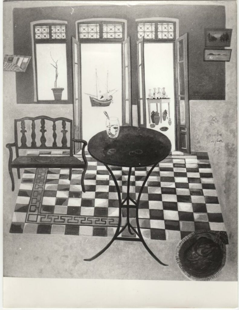Φωτογραφία, α/μ, φωτογραφικό χαρτί, 23,9×18,3 εκ. Αναπαραγωγή έργου του Σπ. Βασιλείου. Στην πίσω όψη σφραγίδα του φωτογραφικού στούντιο «Φωτογραφία Δημήτρη», στα ελληνικά και χειρόγραφη αρίθμηση.