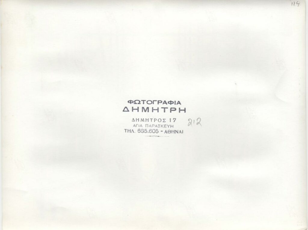 Φωτογραφία έργου, α/μ, σε φωτογραφικό χαρτί, 18,4×23,8 εκ. Στην πίσω όψη επιγραφή και σφραγίδα φωτογράφου.