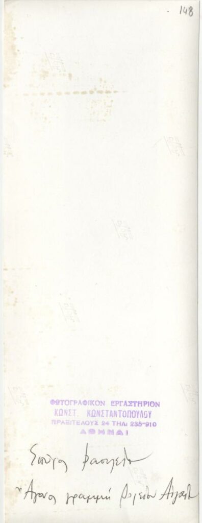 Φωτογραφία έργου, α/μ, φωτογραφικό χαρτί, 24,0×9,0 εκ. Στην πίσω όψη επιγραφή και σφραγίδα φωτογράφου.