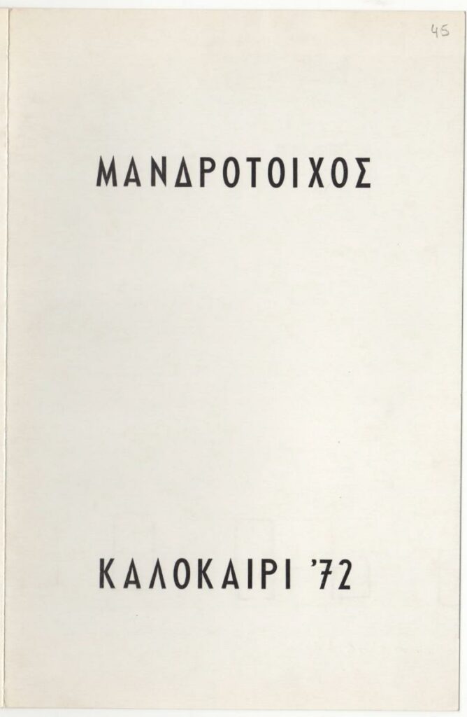 Έντυπο ομαδικής έκθεσης στον Μανδρότοιχος, στην οικία του Σπύρου Βασιλείου στην Ερέτρια.