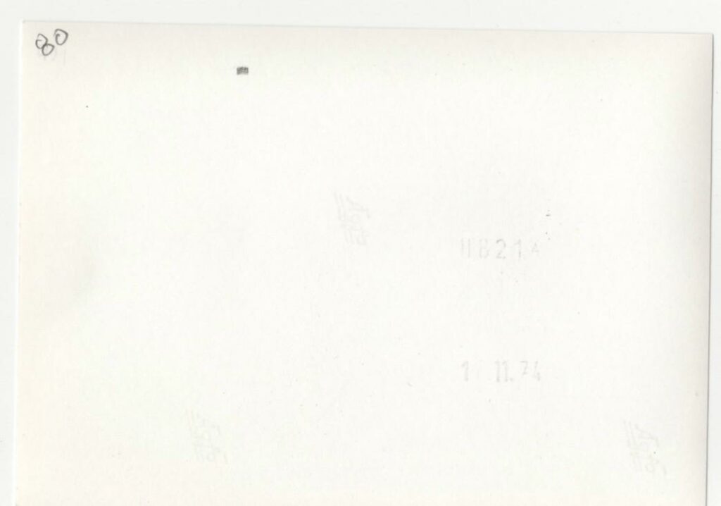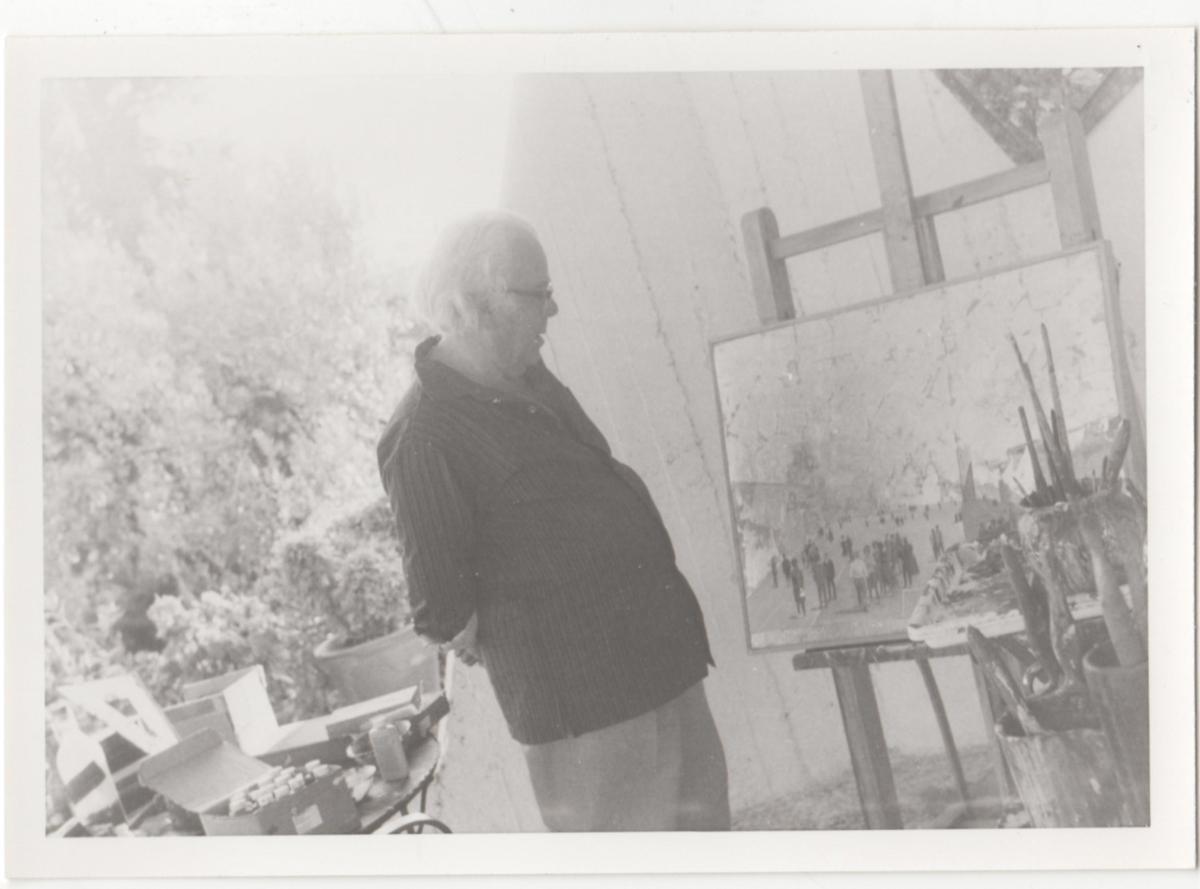 Φωτογραφία του Σπύρου Βασιλείου μπροστά στο έργο του, α/μ, σε φωτογραφικό χαρτί, 9,0×12,7 εκ. Στην πίσω όψη σφραγίδα με αρίθμηση και ημερομηνία.