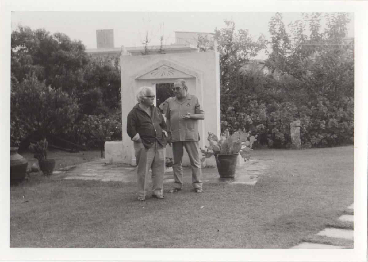 Φωτογραφία του Σπύρου Βασιλείου και του Τώνη Σπητέρη στο σπίτι του καλλιτέχνη στην Ερέτρια (;), α/μ, σε φωτογραφικό χαρτί, 9,0×12,7 εκ. Στην πίσω όψη σφραγίδα.