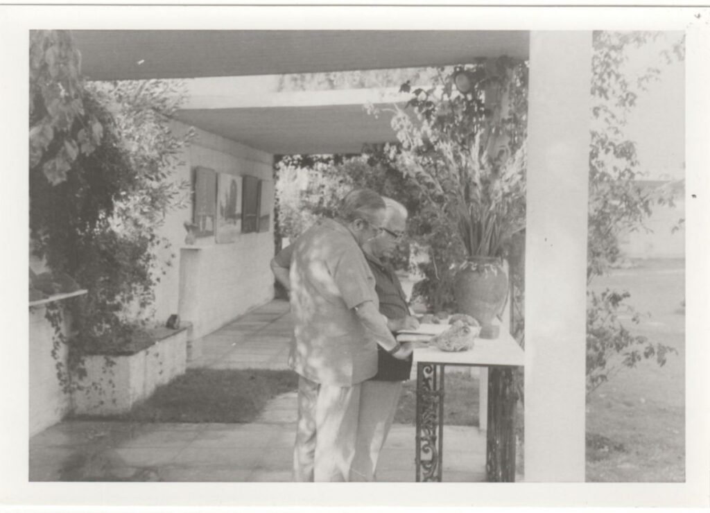 Φωτογραφία του καλλιτέχνη σε συζήτηση με τον Τώνη Σπητέρη, α/μ, 9,0×12,7 εκ. Στην πίσω όψη επιγραφή με αρίθμηση και ημερομηνία.