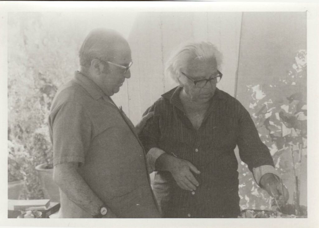 Φωτογραφία του καλλιτέχνη σε συζήτηση με τον Τώνη Σπητέρη, α/μ, 9,0×12,7 εκ. Στην πίσω όψη σφραγίδα με αρίθμηση και ημερομηνία.