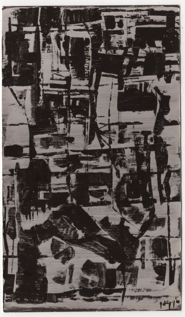 Φωτογραφία, α/μ, φωτογραφικό χαρτί, 17,2×10,0 εκ. Αναπαραγωγή έργου του Δημήτρη Φατούρου (λάδι, 1960). Στην πίσω όψη, επιγραφή.
