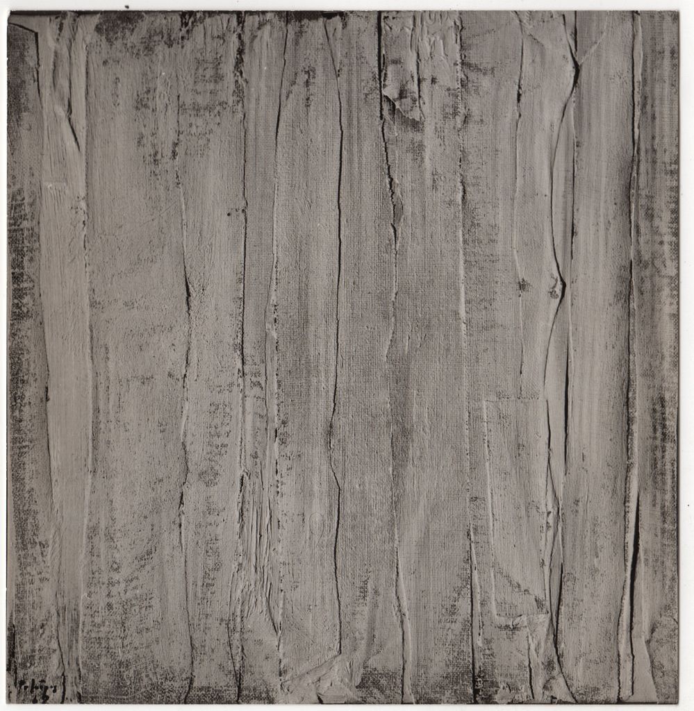 Φωτογραφία, α/μ, φωτογραφικό χαρτί, 12,5×12,0 εκ. Αναπαραγωγή του έργου του Δημήτρη Φατούρου “Objet” (1962). Στην πίσω όψη επιγραφή.