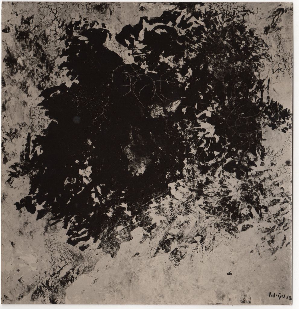 Φωτογραφία, α/μ, 12,5×12,0 εκ. Αναπαραγωγή του έργου του Δημήτρη Φατούρου “Transition”, 1962. Στην πίσω όψη, επιγραφή.