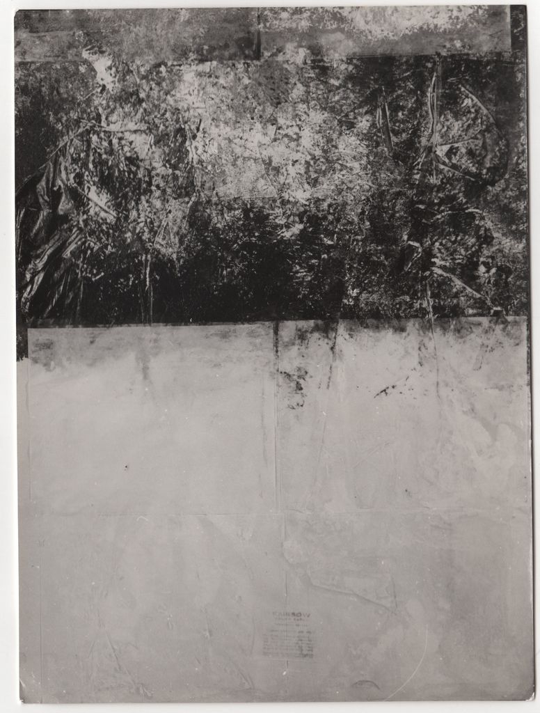 Φωτογραφία, α/μ, φωτογραφικό χαρτί, 16,0×12,0 εκ. Αναπαραγωγή του έργου του Δημήτρη Φατούρου “Dialectique Superposée No 4”, (λάδι, χαρτί, 1963-1964). Στην πίσω όψη, επιγραφή.