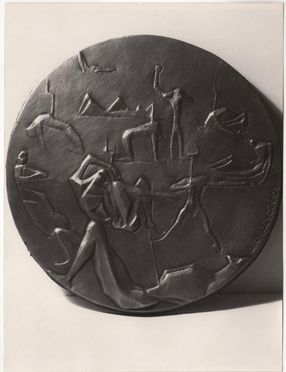 Φωτογραφία, α/μ, φωτογραφικό χαρτί, 24,0×18,0 εκ. Αναπαραγωγή του έργου του Δημήτρη Φερεντίνου “Ποτέ πλέον Άουσβιτς”. Στην πίσω όψη επιγραφή.