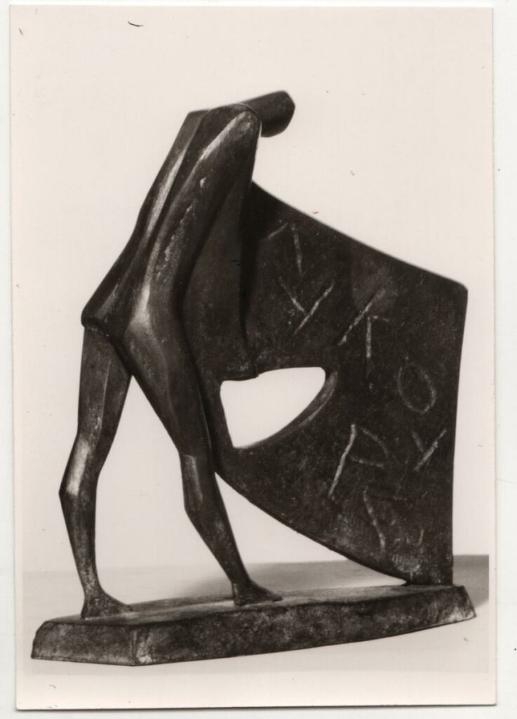 Αναπαραγωγή φωτογραφίας, α/μ, σε ταχυδρομική κάρτα, 13,5×9,4 εκ. Αναπαραγωγή του έργου του Δ. Φερεντίνου “Το νόμισμα του Λυκούργου”. Στην πίσω όψη επιγραφή.