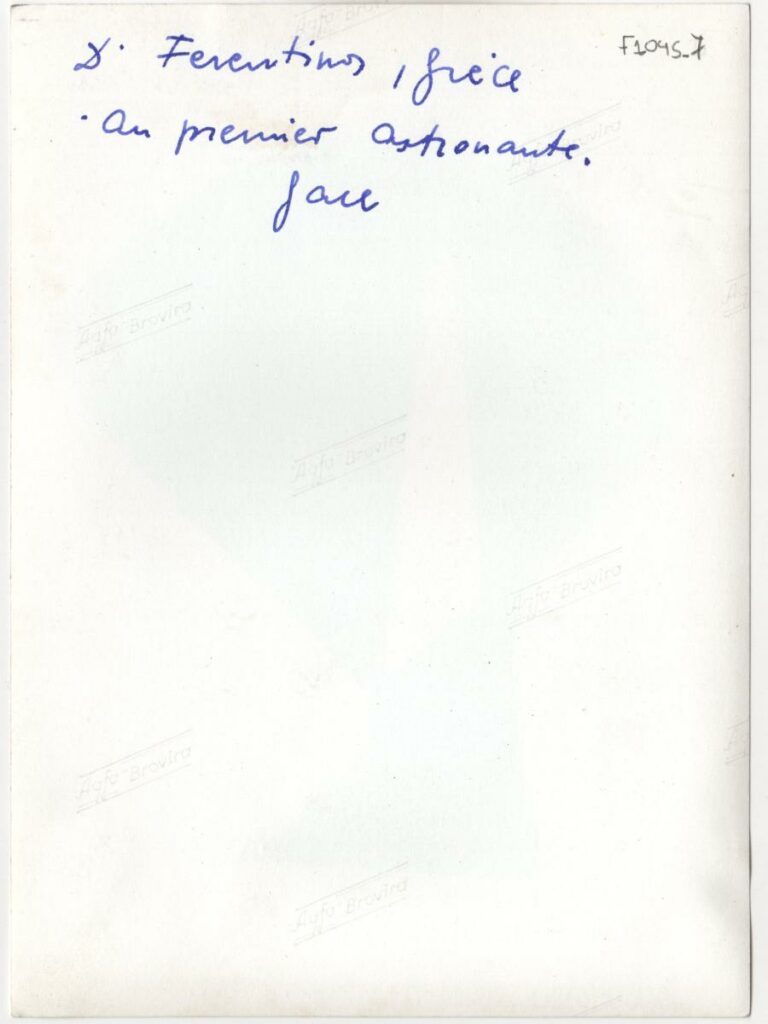 Φωτογραφία, α/μ, φωτογραφικό χαρτί, 18,0×13,2 εκ. Αναπαραγωγή του έργου του Δημήτρη Φερεντίνου “Au premier astronaute”. Στην πίσω όψη επιγραφή.