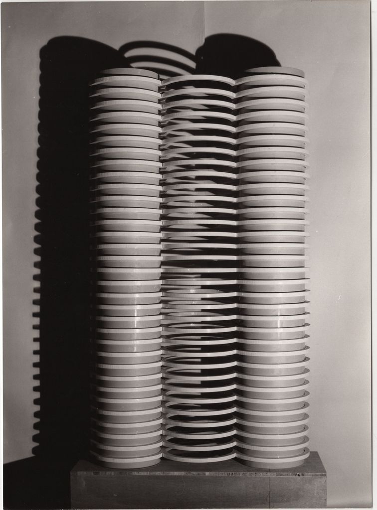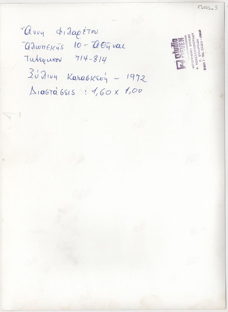 Φωτογραφία, α/μ, φωτογραφικό χαρτί, 24,0×17,4 εκ. Αναπαραγωγή του έργου της Άννης Φιλαρέτου “Ξύλινη κατασκευή” (1972). Στην πίσω όψη επιγραφή και σφραγίδα του φωτογραφείου Studio 7 – Κ. Κωνσταντόπουλος, Γ. Ευκαρπίδης