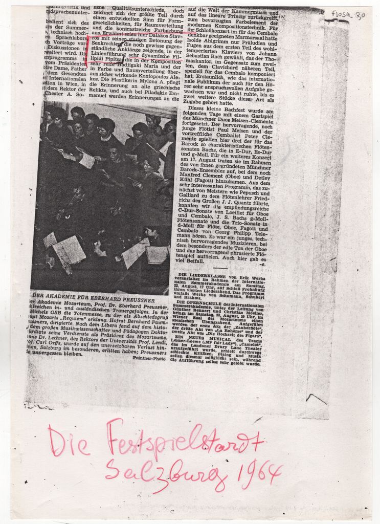 Φωτοαντίγραφο αποκόμματος, έντυπο, χαρτί, 29,8×21,0 εκ., όπου δημοσιεύεται, στα γερμανικά, απόσπασμα κριτικής της ομαδικής έκθεσης με γενικό τίτλο “Έκθεση Σύγχρονης Ελληνικής Ζωγραφικής και Γλυπτικής” που διοργανώθηκε στο Σάλτσμπουργκ το 1964. Επιγραφές.