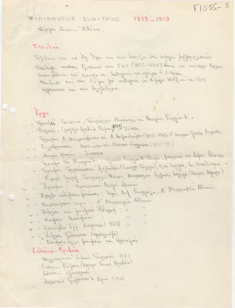 Βιογραφικό, χειρόγραφο, χαρτί, 28×21 εκ., στα ελληνικά, του Δημήτριου Φιλιππότη.