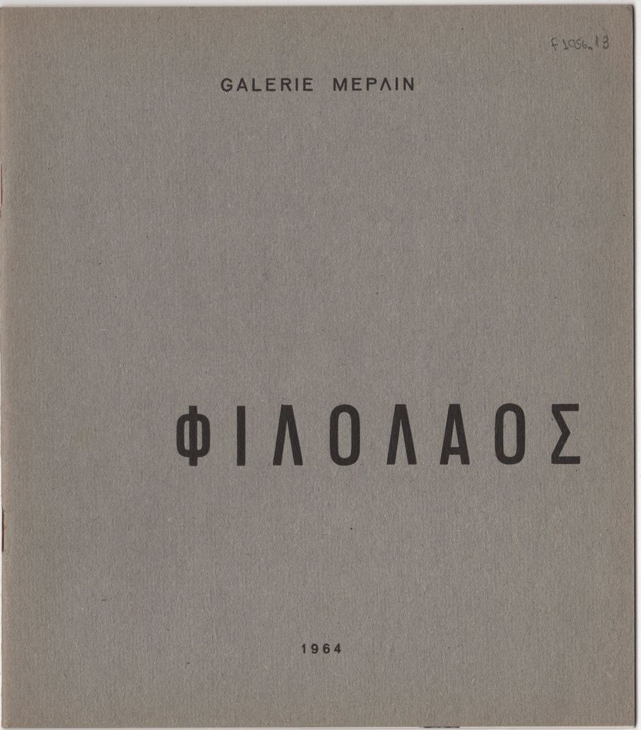 Έντυπο, στα ελληνικά, αγγλικά και γαλλικά, πολυσέλιδο, χαρτόνι και χαρτί ιλουστρασιόν, 19,2×17,0 εκ. Έντυπο της ατομικής έκθεσης του Φιλόλαου στην Αθήνα το 1964. Περιέχει κριτικό κείμενο της Gisèle Prassinos, αποσπάσματα κριτικών των: Α.Γ. Ξύδης, Τ. Σπητέρης, M. Ragon και M. Conil-Lacoste και σύντομο βιογραφικό καλλιτέχνη.