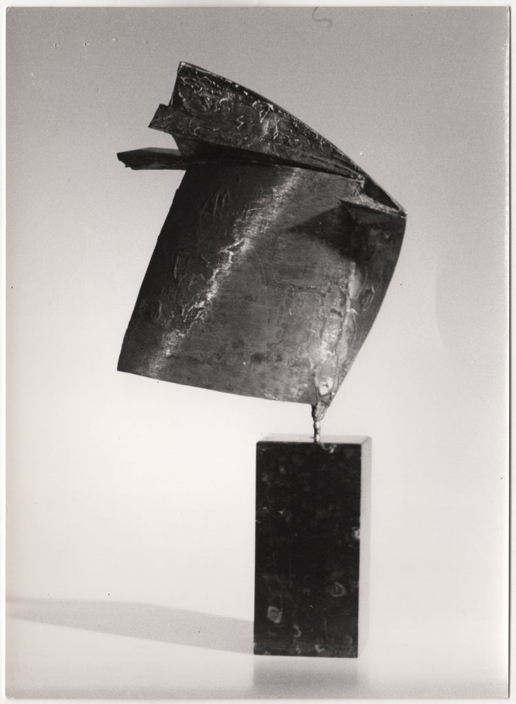Φωτογραφία, α/μ, φωτογραφικό χαρτί, 20,3×14,7 εκ. Αναπαραγωγή του έργου του Φιλόλαου Τλούπα “Μικρή γλυπτική” (ανοξείδωτο ατσάλι). Στην πίσω όψη επιγραφή.