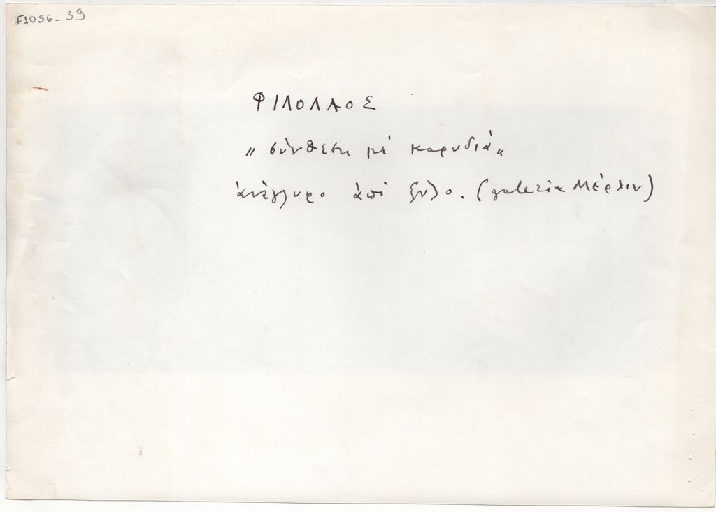 Φωτογραφία, α/μ, φωτογραφικό χαρτί, 18,8×26,7 εκ. Αναπαραγωγή του έργου του Φιλόλαου Τλούπα «Σύνθεση με καρυδιά» (ανάγλυφο από ξύλο). Στην πίσω όψη επιγραφή.