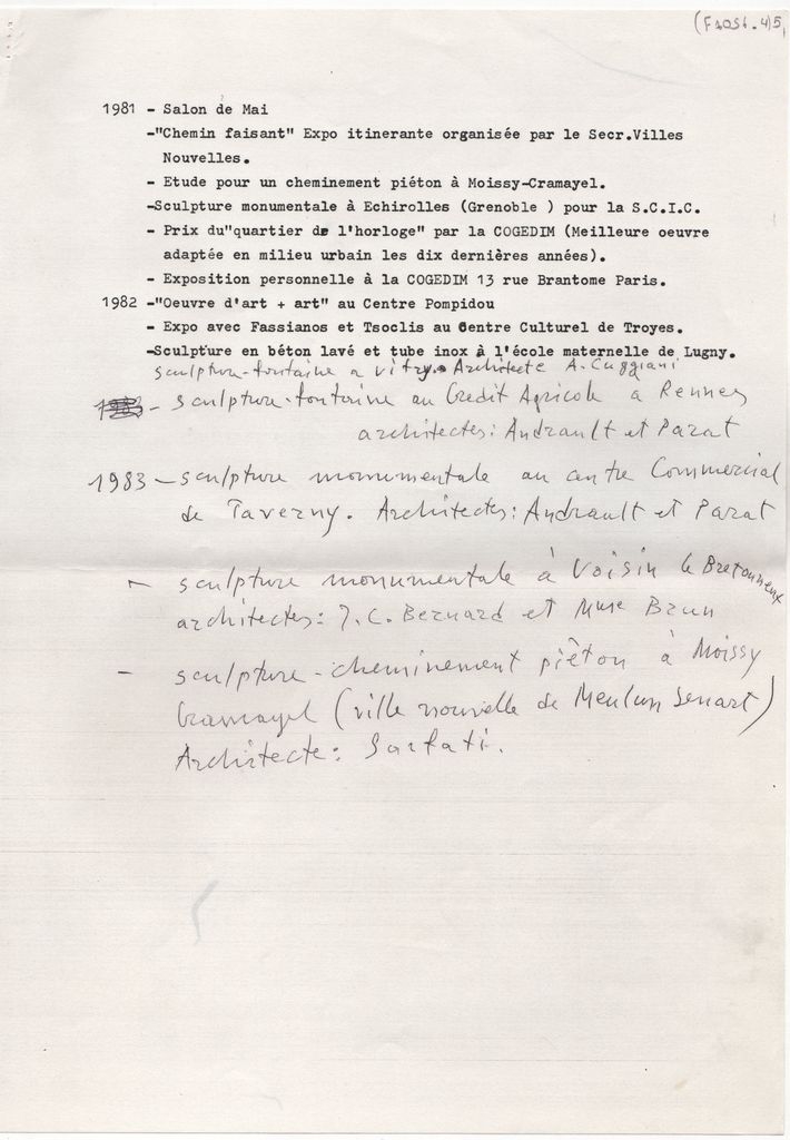 Φωτοαντίγραφο κειμένου, δακτυλόγραφο, με χειρόγραφες συμπληρώσεις, στα γαλλικά, σε χαρτί, 5 φφ, 29,8×21,0 εκ. Βιογραφικό σημείωμα του Φιλόλαου Τλούπα, όπου γίνεται αναφορά σε σπουδές, ομαδικές και ατομικές εκθέσεις και έργα του καλλιτέχνη.