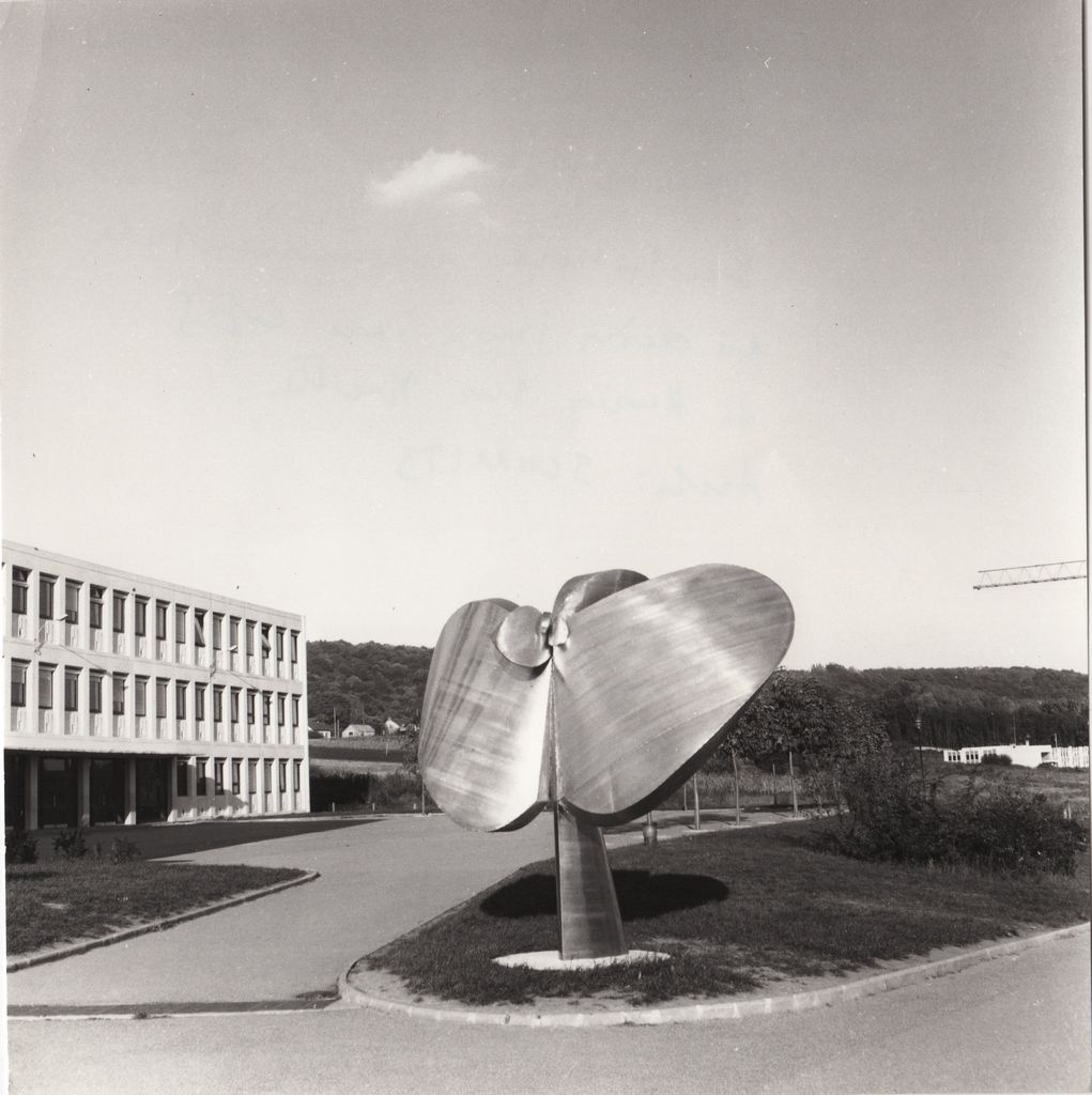 Φωτογραφία, α/μ, φωτογραφικό χαρτί, 18,5×18,0 εκ. Άποψη έργου του Φιλόλαου Τλούπα σε υπαίθριο χώρο στο Bures-sur-Yvette στη Γαλλία. Στην πίσω όψη επιγραφή.