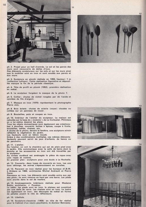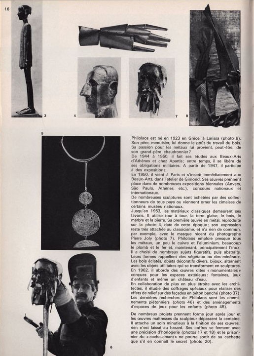Τεύχος, έντυπο, χαρτί ιλουστρέ, 50 σσ., 29,8×21,0 εκ, όπου δημοσιεύεται, στα γαλλικά, άρθρο της.Marie Thérèse Mathieu για το έργο του Φιλάλαου Τλούπα. Στο ίδιο τεύχος δημοσιεύονται τα άρθρα”Foyer de vacances à St.-Martin-de-belleville” και “Centre Océanographique de Nantes”.