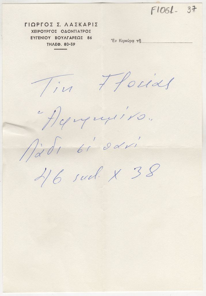 Χειρόγραφο, χαρτί, 20×14 εκ., στα ελληνικά, με πληροφορίες έργου του Tin Florias.