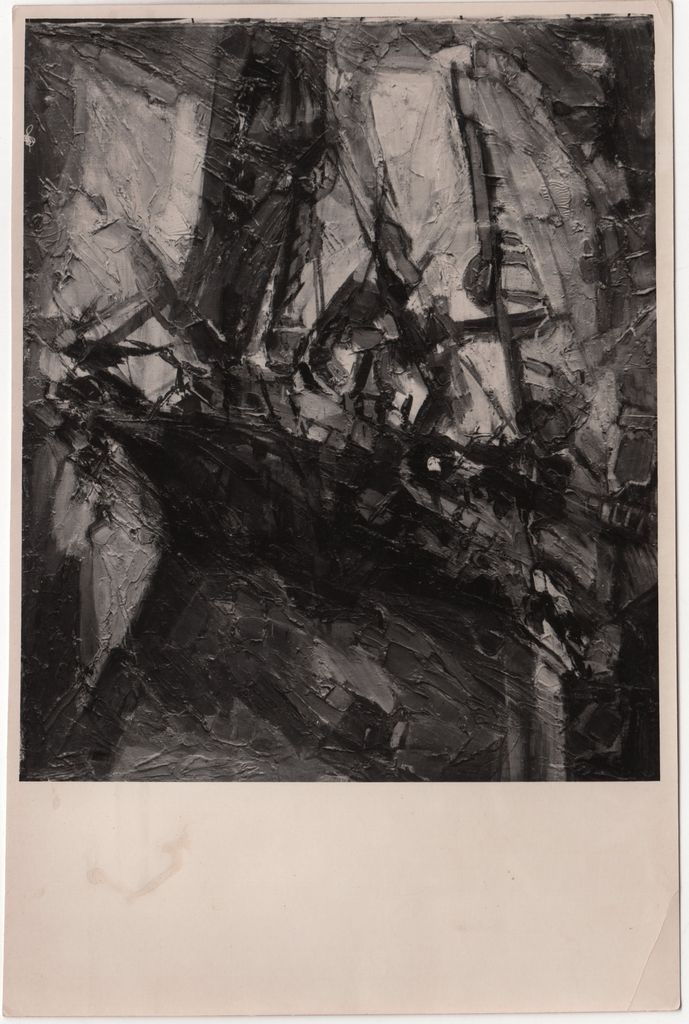Φωτογραφία, α/μ, φωτογραφικό χαρτί, 18,2×12,2 εκ. Αναπαραγωγή του έργου της Χαρίκλειας Φωτίου-Χατζησάββα με τίτλο «Καράβι», 1961. Στην πίσω όψη επιγραφή.