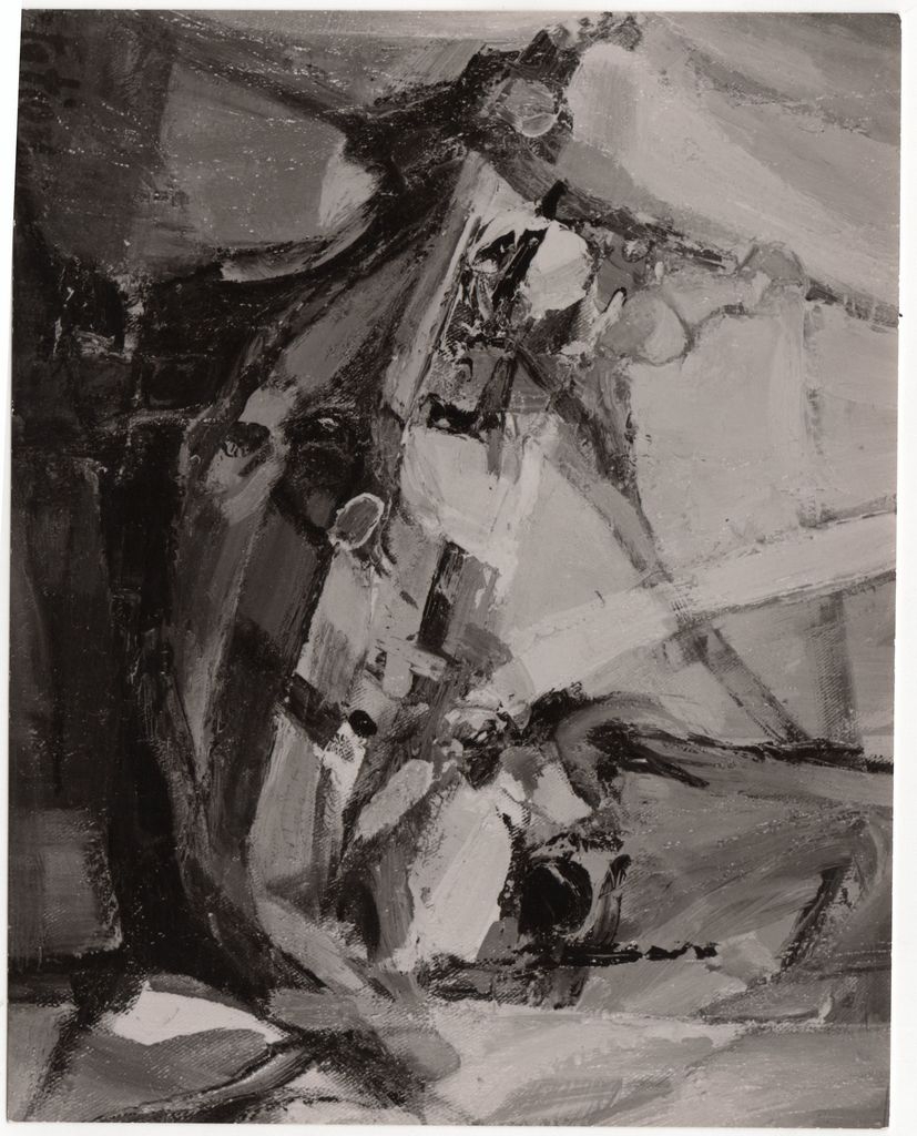 Φωτογραφία, α/μ, φωτογραφικό χαρτί, 11,8×15,0 εκ. Αναπαραγωγή του έργου της Χαρίκλειας Φωτίου-Χατζησάββα με τίτλο «Καράβι», 1964. Στην πίσω όψη επιγραφή.