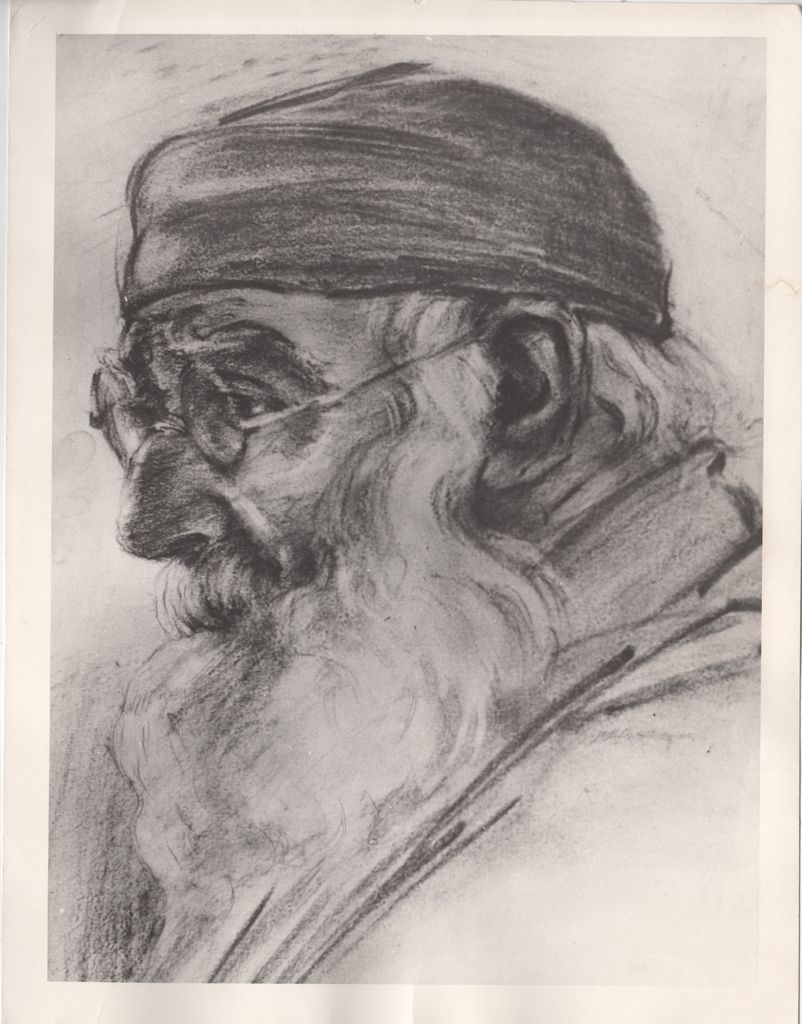 Φωτογραφία, α/μ, φωτογραφικό χαρτί, 25,0×19,5 εκ. Αναπαραγωγή έργου του Μιχαήλ Αξελού με τίτλο «Κεφάλι Χαλεπά» (σέπια, περίπου 1937). Στην πίσω όψη επιγραφές.