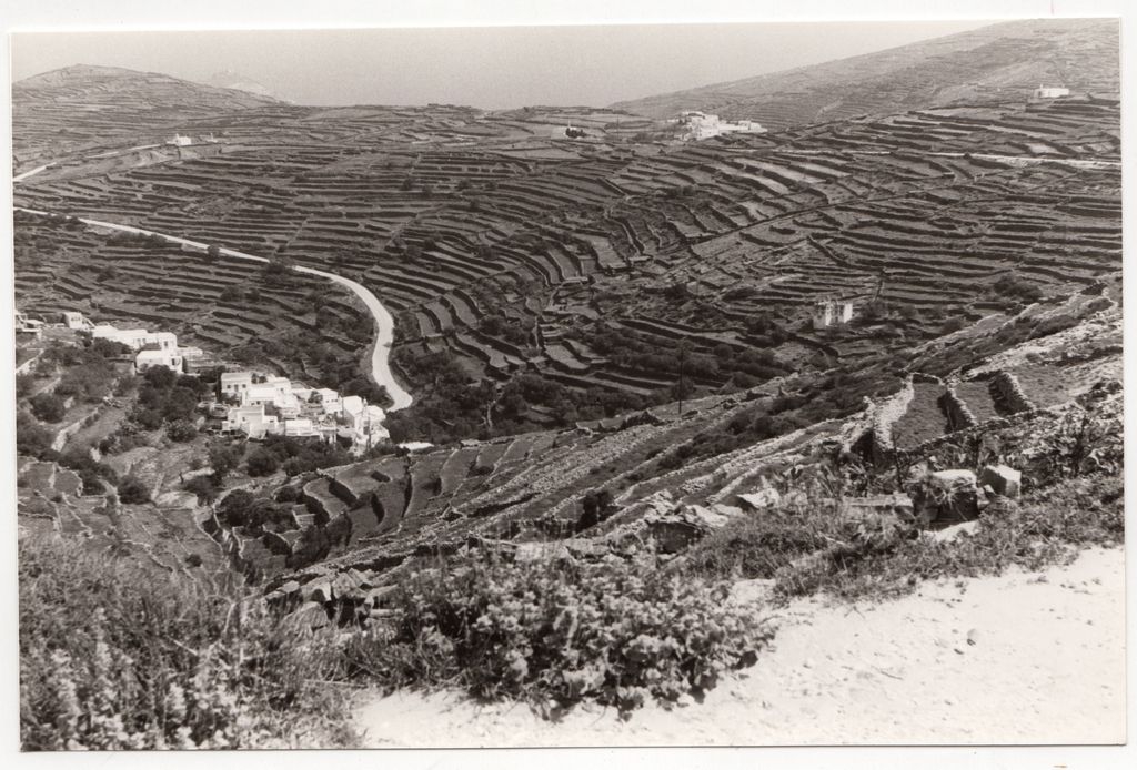Φωτογραφία, α/μ, φωτογραφικό χαρτί, 11,3×17,4 εκ. Άποψη τοπίου στον Πύργο Τήνου. Βρέθηκε στον φάκελο του γλύπτη Γιαννούλη Χαλεπά.