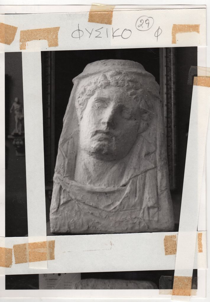 Φωτογραφία, α/μ, φωτογραφικό χαρτί, 18,0×12,8 εκ. Αναπαραγωγή του έργου του Γιαννούλη Χαλεπά με τίτλο «Ο Μέγας Αλέξανδρος» (Ίδρυμα Ευαγγελίστριας Τήνου). Πάνω στη φωτογραφία αυτοσχέδιο πλαίσιο με αποκόμματα χαρτιού. Στην πίσω όψη επιγραφή.