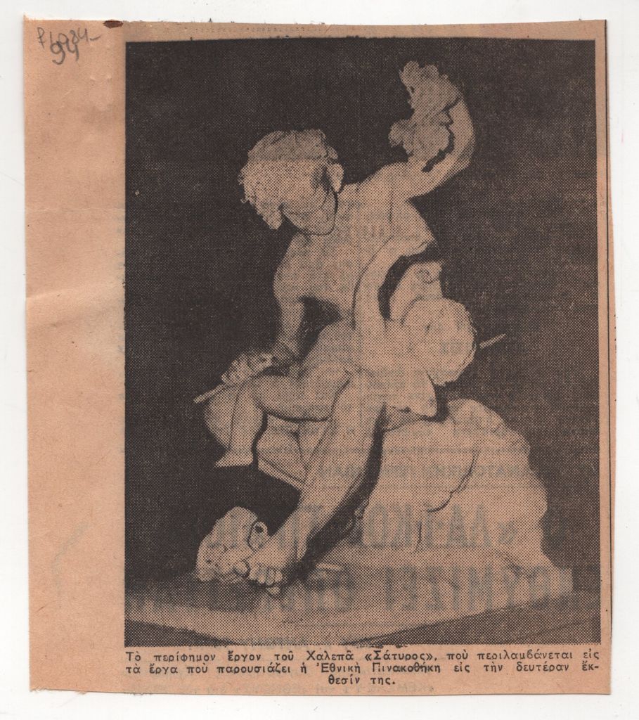 Απόκομμα, έντυπο, χαρτί, 13,0×11,5 εκ., όπου δημοσιεύεται, αναπαραγωγή, α/μ, έργου του Γιαννούλη Χαλεπά με αφορμή τη διοργάνωση της αναδρομικής έκθεση έργων του στην Αθήνα [το 1979].