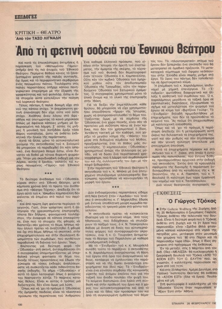 Εντάσσεται στη στήλη “Κριτική-Θέατρο” του εντύπου.
