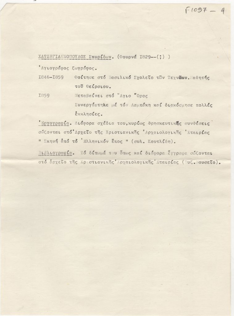Βιογραφικό, δακτυλόγραφο, χαρτί, 29×21 εκ., στα ελληνικά, του Σπυρίδωνα Χατζηγιαννόπουλου.