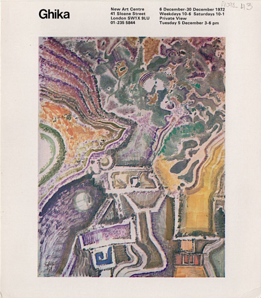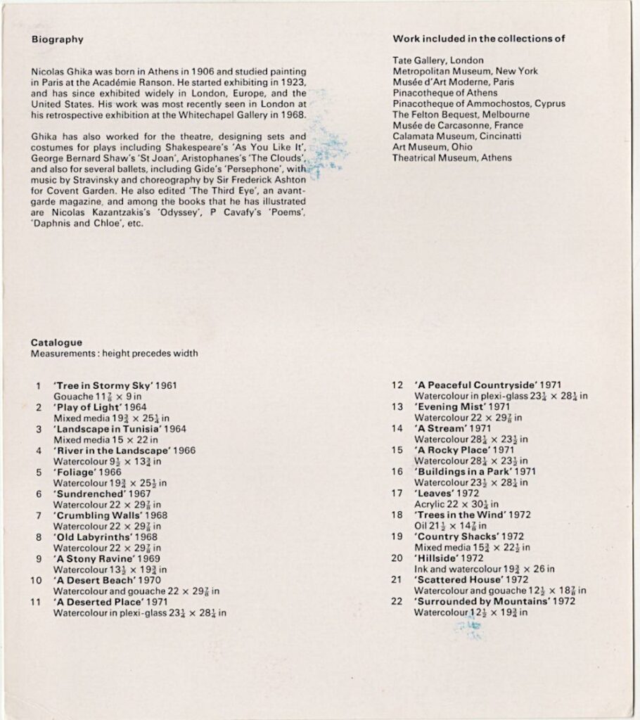 Έντυπο έκθεσης του Νίκου Χατζηκυριάκου-Γκίκα στο New Art Centre στο Λονδίνο.