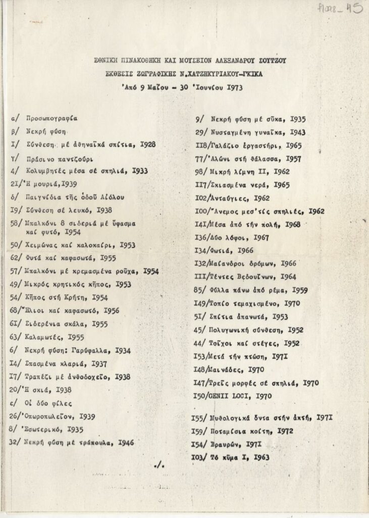 Φωτοαντίγραφο καταλόγου έκθεσης του Νίκου Χατζηκυριάκου-Γκίκα στην Εθνική Πινακοθήκη στην Αθήνα.