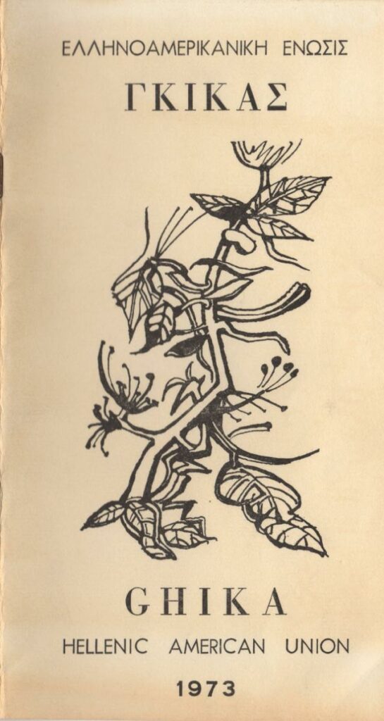 Κατάλογος έργων που παρουσιάστηκαν στην ατομική έκθεση του Νίκου Χατζηκυριάκου-Γκίκα Ελληνοαμερικάνικη Ένωση στην Αθήνα.