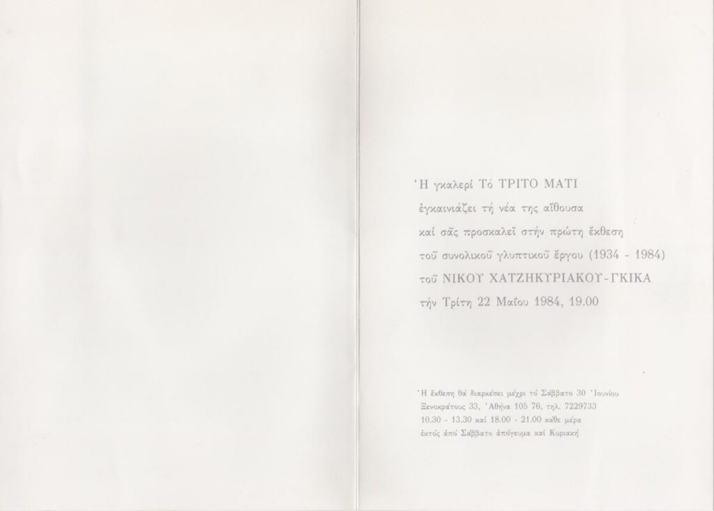 Πρόσκληση εγκαινίων έκθεσης του Νίκου Χατζηκυριάκου-Γκίκα στην Αίθουσα “Το Τρίτο Μάτι” στην Αθήνα.