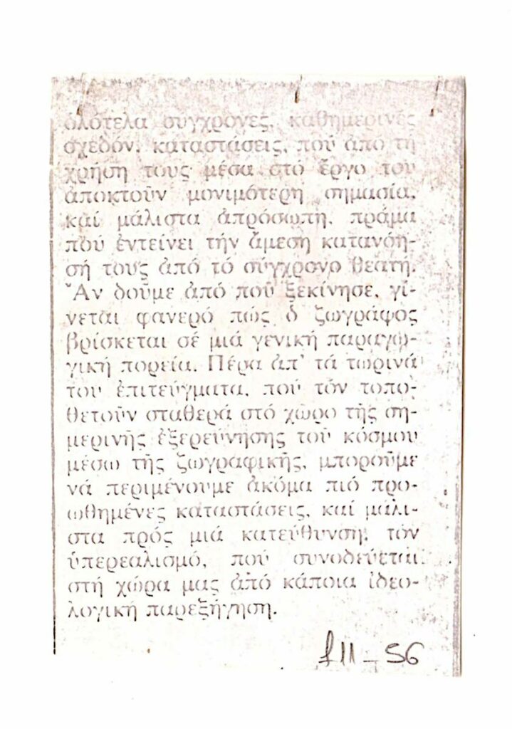 Φωτοαντίγραφο αποκόμματος, χαρτί, 2 φφ, 18,3×4,5 και 7,5×5εκ. αντίστοιχα, στα ελληνικά, με άρθρο σχετικά με τη ζωή και το έργο του Θανάση Ακριβόπουλου.