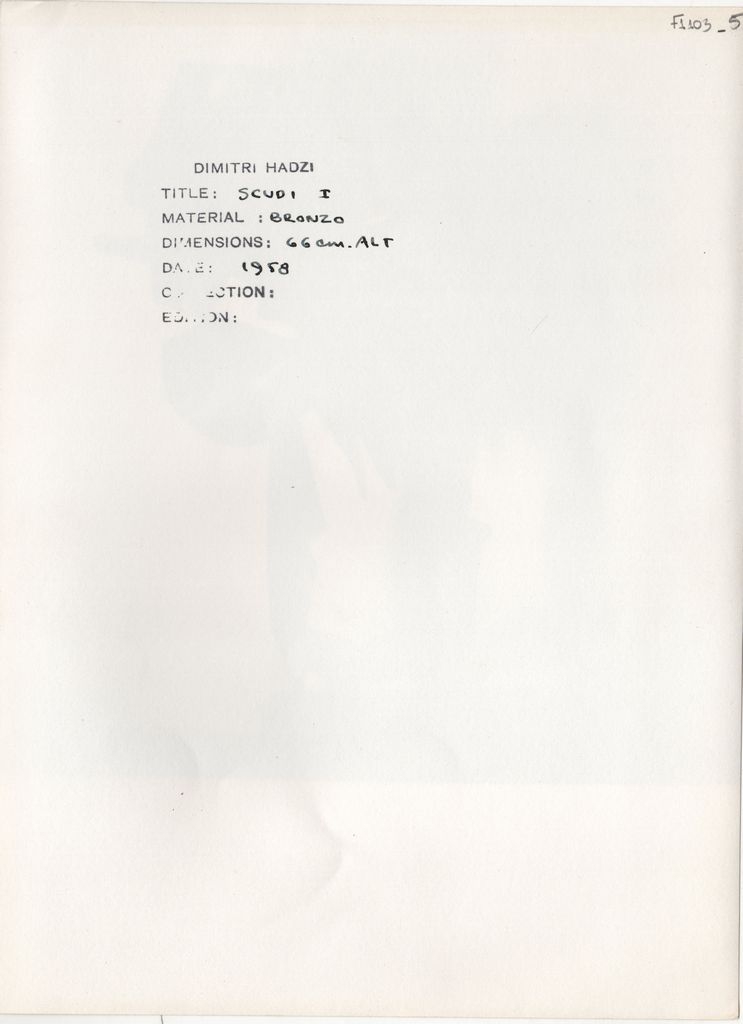 Φωτογραφία, α/μ, σε φωτογραφικό χαρτί, 24,0×17,7 εκ. Αναπαραγωγή έργου του γλύπτη Δημήτρη Χατζή. Στην πίσω όψη σφραγίδα και επιγραφές.